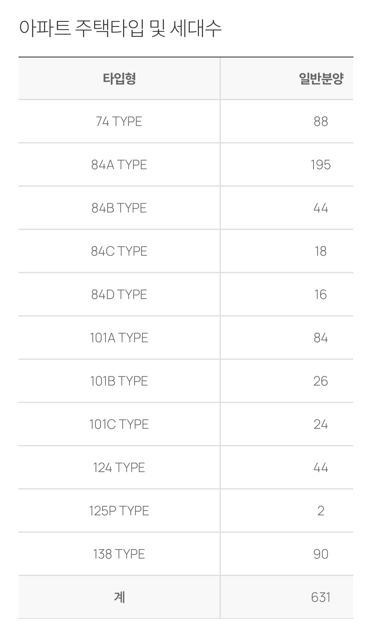 롯데캐슬 이스트폴은 지하 7층부터 지상 최고 48층까지 총 6개 동으로 구성되며, 총 1063 가구가 입주할 수 있습니다. 전용면적은 74제곱미터부터 138제곱미터까지 다양하게 제공되며, 일반분양 세대수는 631 가구입니다.