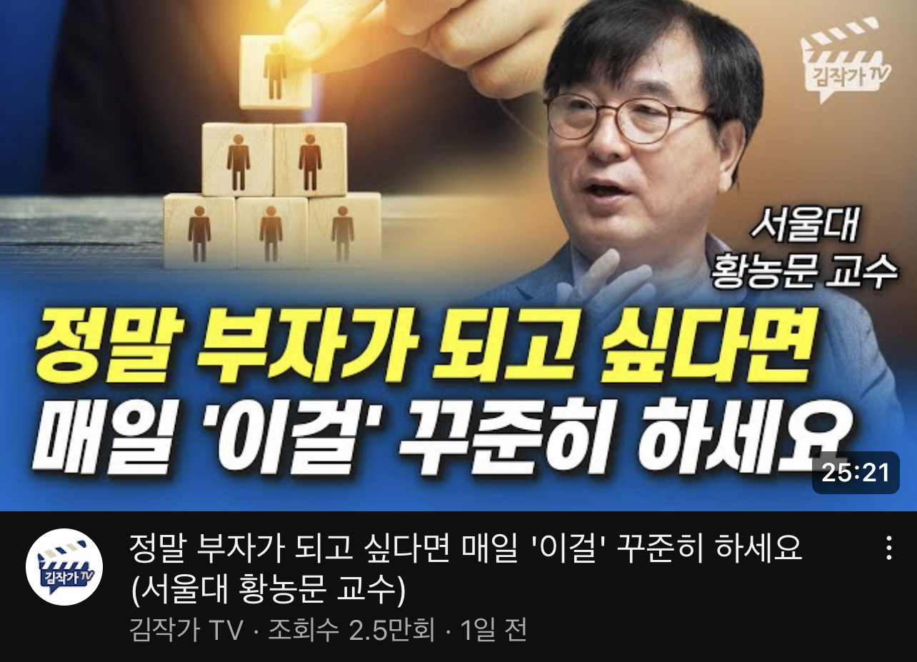 오늘은 김작가 TV에서 다룬 서울대 황농문 교수의 인터뷰 영상을 소개하고자 합니다. 이 영상은 서울대 경영학과 교수이신 황농문 교수님께서 부자가 되는 법에 대해 강연하시는 내용을 담고 있습니다. 이번 인터뷰에서는 부자의 정의와 조건, 그리고 부자가 되기 위한 실천 방법에 대해 알려주셨습니다.