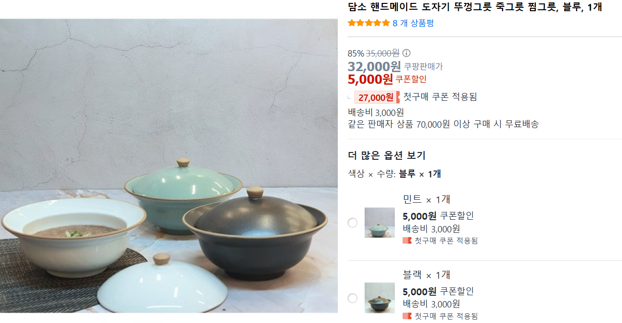 - 도자기 죽 그릇 추천: [담소 핸드메이드 도자기]