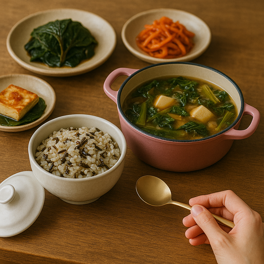 “톳밥과 얼갈이 된장국 – 무기질과 식이섬유 가득한 여름 보양 밥상”