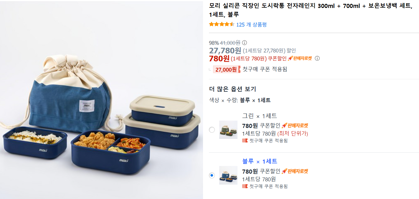 - 실리콘 도시락통은 세척 쉬움 + 전자레인지 사용 가능