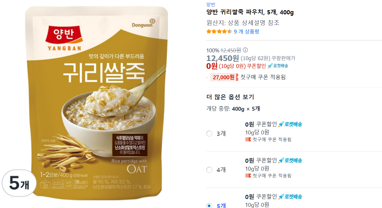 - 죽은 전자레인지용 팩 활용하면 아침·저녁 간식용으로도 좋음