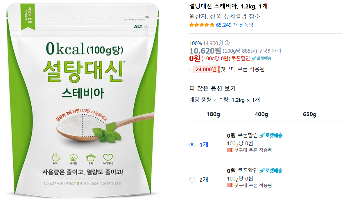 - 스테비아 단독보다는 에리스리톨과 혼합된 제품을 사용하세요