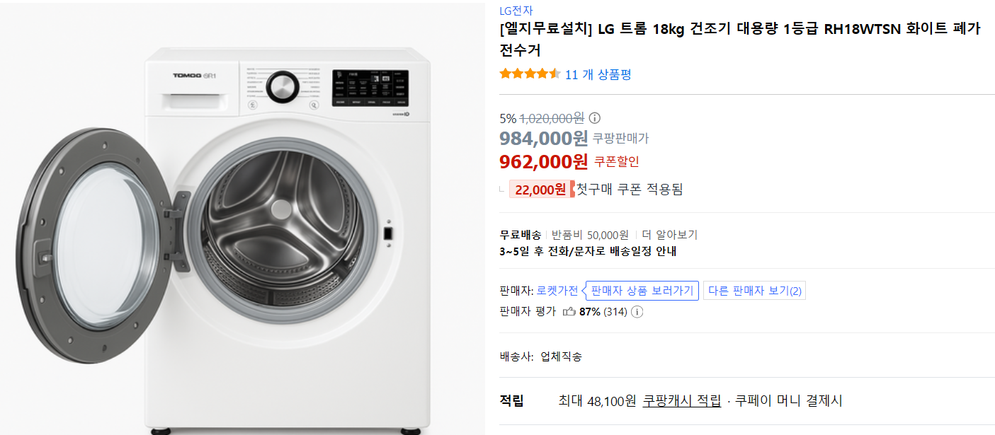 👉 전기세 아끼는 1등급 드럼 세탁기 BEST 보러가기