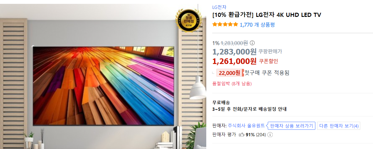 - 1등급 TV → 장시간 시청하는 가정에서 전기세 절약 효과 뚜렷