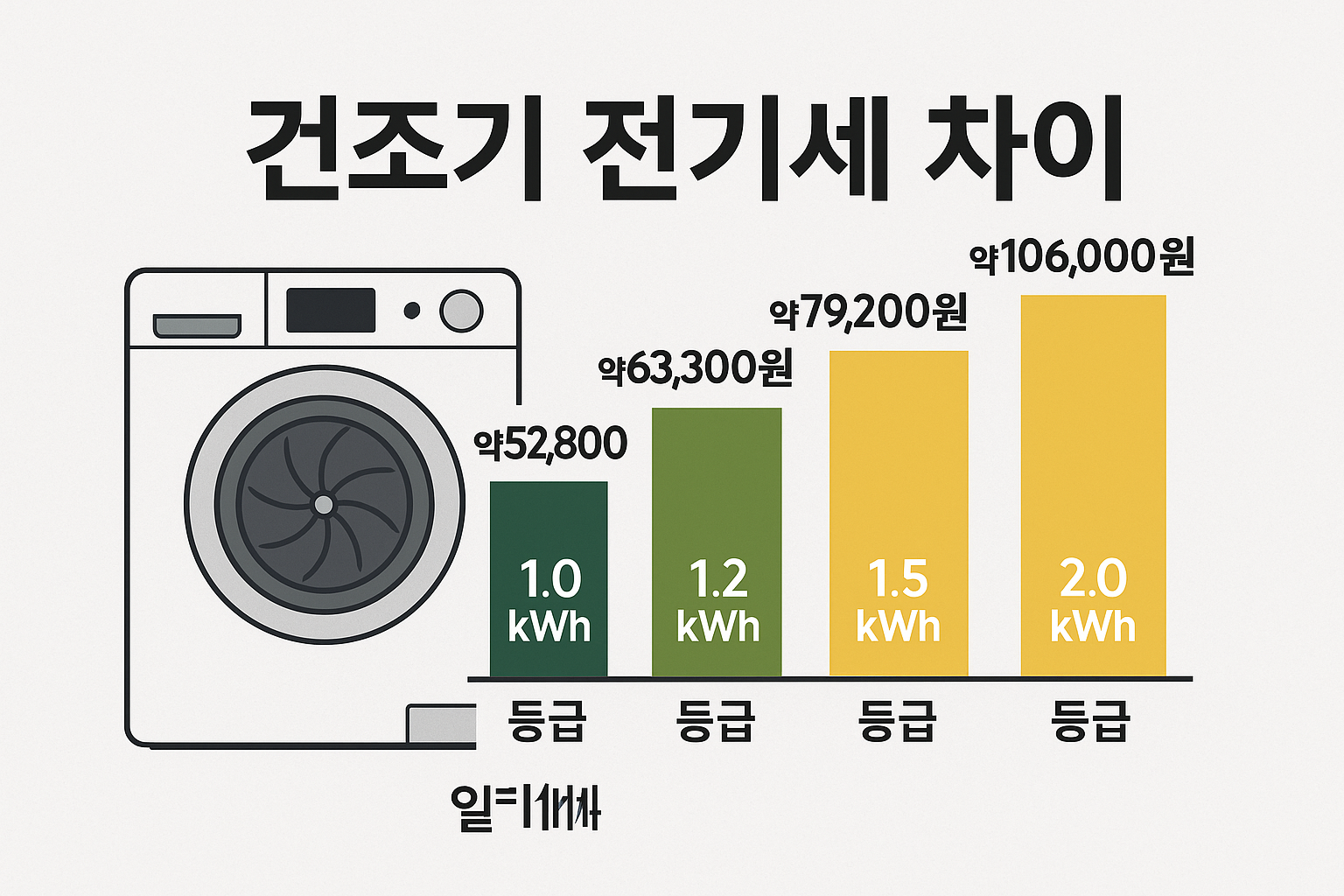 | 건조기 | 1.5kWh/회 | 3.0kWh/회 | 약 3,300원 | 약 40,000원 |