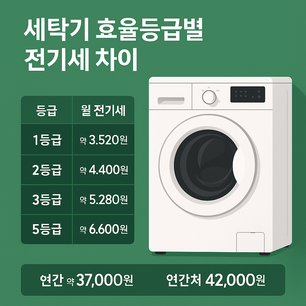 세탁기는 가정마다 사용 빈도가 높아, 효율 등급 차이가 누진세 부담에 직결되는 가전입니다.