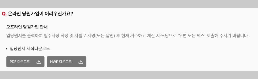 - 거주지 관할 시·군·구 당원협의회 사무실 방문