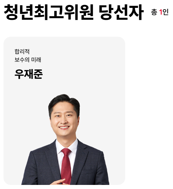→ 당내 세대와 계파를 아우르는 인물들이 선출되었으며, 이들 최고위원은 당대표와 함께 당의 의사결정 핵심 축을 담당하게 됩니다. - 청년최고위원 당선자: 우재준