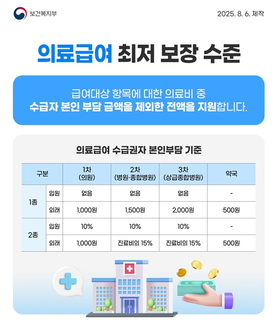 | 의료급여 | 기준 중위소득 40% 이하 가구 지원 유지 외래 진료 365회 초과 시 본인부담률 30% 신설 |