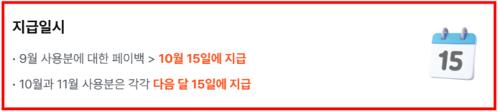 상생페이백 환급은 사용월의 다음 달 15일에 지급됩니다.