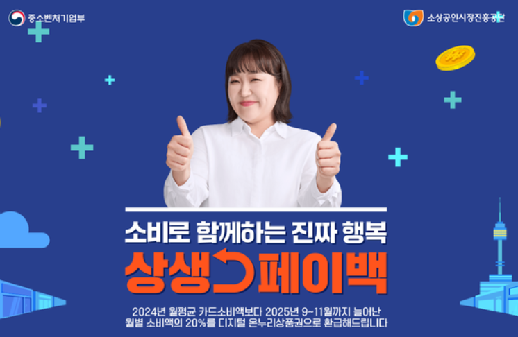 2025년 상생페이백 신청방법·혜택·사용처 총정리2025년 상생페이백 신청 방법·대상·사용처·환급 일정까지 한눈에! 카드 소비 증가분의 20%를 최대 30만 원까지 디지털 온누리상품권으로 환급받