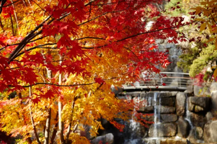 먼저 높은 지대부터 색이 변하기 때문에, 정상 부근의 분재원과 암석원에서 가장 먼저 붉은 단풍을 볼 수 있습니다.