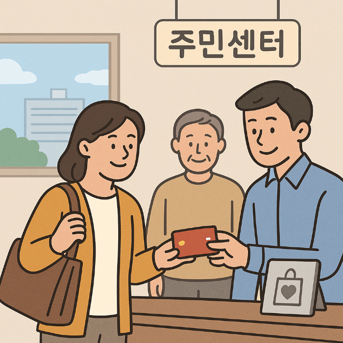 - 주민센터 방문: 선불카드 또는 지역사랑상품권 수령 가능