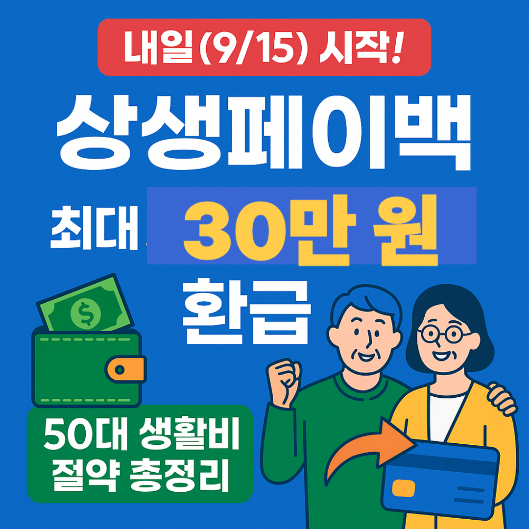 내일(9/15) 시작! 50대 생활비 절약 필수|2025 상생페이백 최대 30만원 환급 총정리