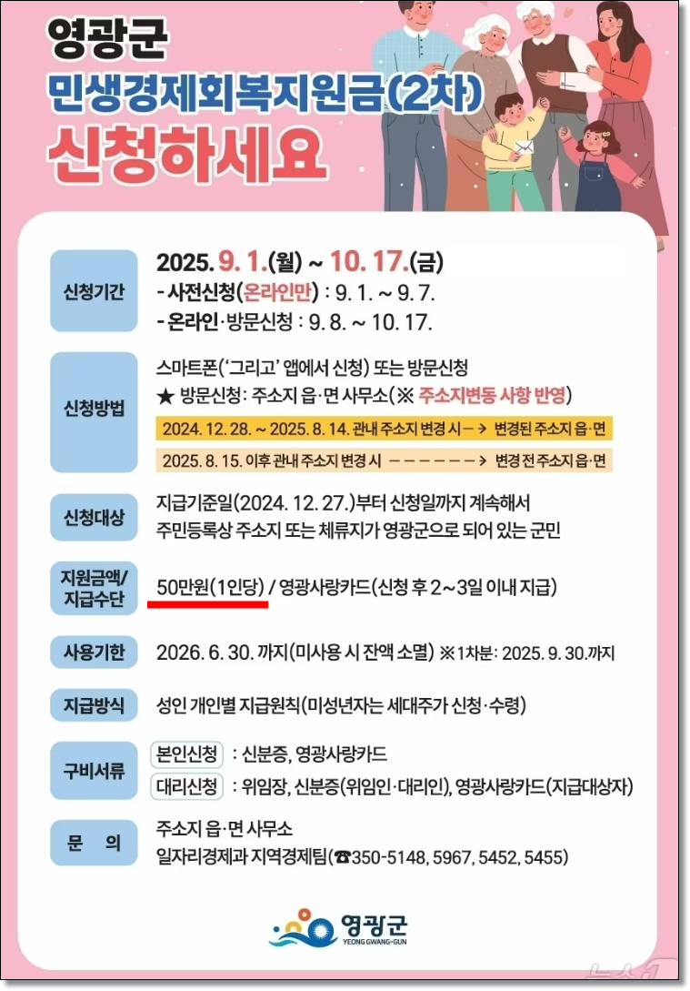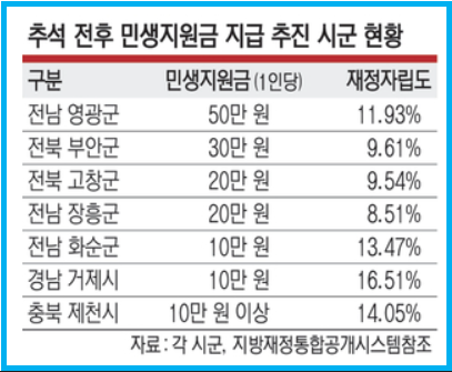 - 전남 영광군 : 전 군민 1인당 50만 원