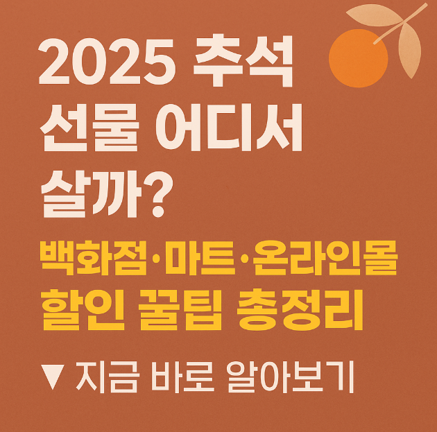 2025 추석 선물 어디서 사야 가장 알뜰할까요? 백화점, 대형마트, 온라인몰별 할인 혜택과 사전예약 꿀팁을 총정리했습니다. 올해는 실속·프리미엄 선물을 현명하게 고를 수 있는 최적의 구매 전략을 알려드립니다.