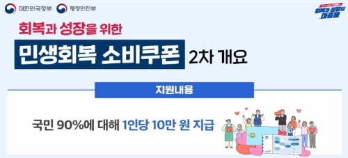 소득 하위 90% 가구라면 누구나 1인당 10만 원을 지원받아 식당, 전통시장, 편의점, 동네마트 등에서 현금처럼 사용할 수 있습니다.