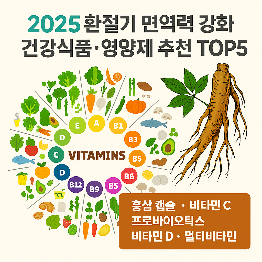 아침마다 피곤하고 감기 잦다면? 2025 환절기 면역력 강화 필수 영양제 & 건강식품 TOP5를 지금 바로 확인하세요. 비타민·홍삼·프로바이오틱스 선택 기준까지 총정리!