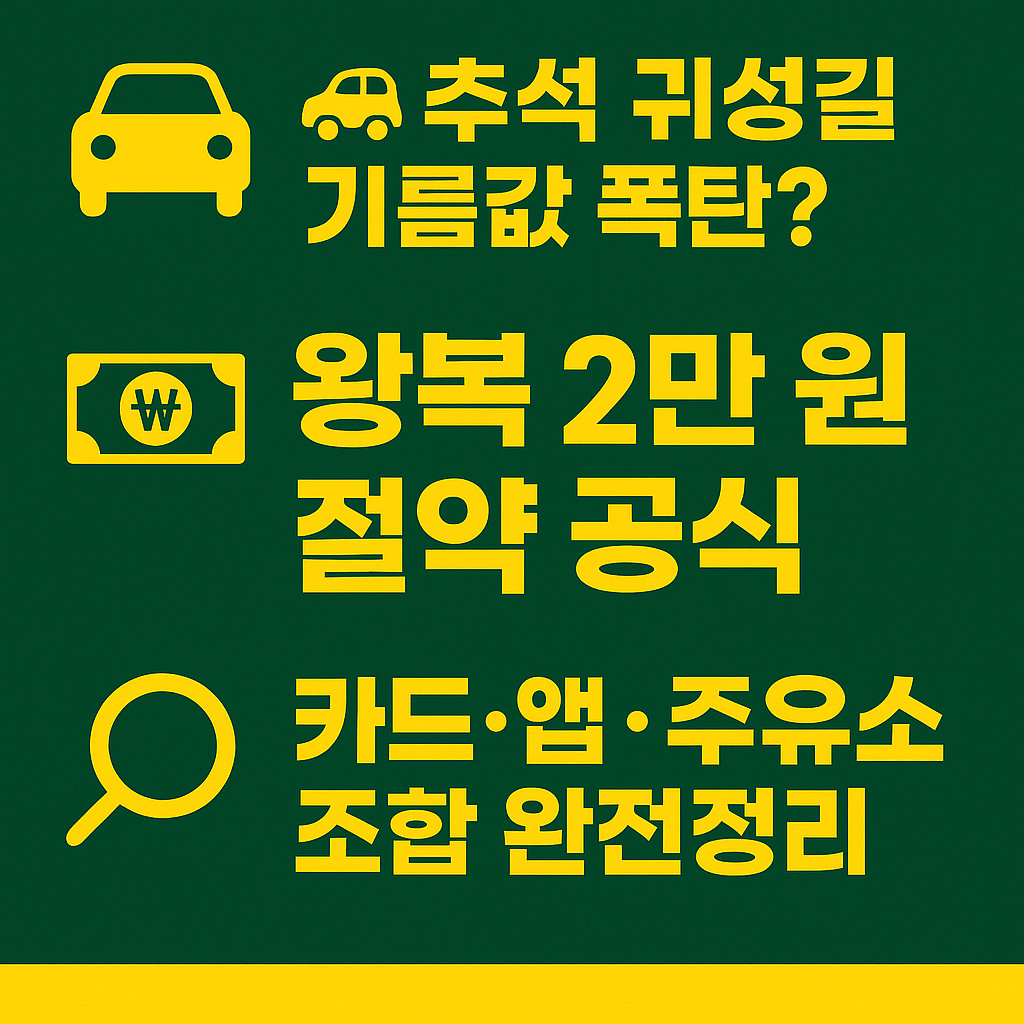 2025 추석 귀성길 주유비 계산법 총정리|서울↔부산 왕복 기준 예상 비용, 주유할인카드·앱·알뜰주유소 조합으로 최대 20% 절약! 지금 바로 내 차량 패턴에 맞는 주유비 절약 루틴을 확인하세요.