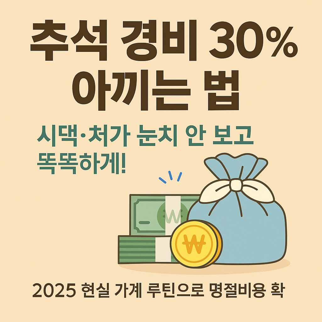 추석 경비 30% 절약 공식 공개! 시댁·처가 눈치 없이 공평하고 현명하게 관리하는 2025 추석 가계 루틴. 예산표, 가계부 앱, 포인트 혜택, CMA 리셋까지 — 실전 절약 플랜 총정리.