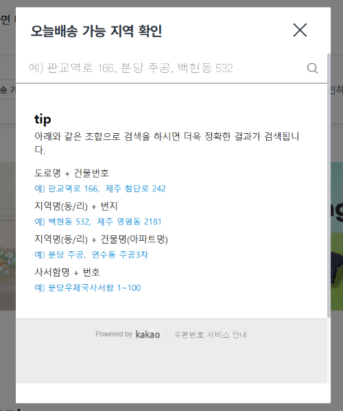 2. 오늘배송 이용 가능 지역 & 주문 마감 시간