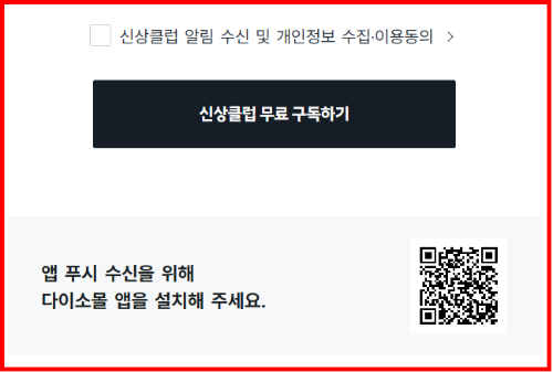 다이소몰의 신상품·기획전 정보를 앱 푸시 또는 이메일로 빠르게 받아볼 수 있는 구독 서비스입니다.