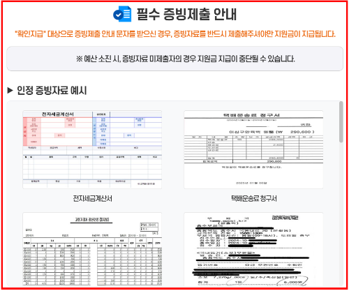 - 서류: 전자세금계산서·카드영수증, 운송장/배송내역 캡처, 사업자등록증, 통장사본 등