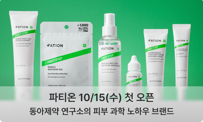 | 파티온(FATION) | 10월 15일(수) | 니오스카 수딩패드, 수분 진정크림 | 동아제약 연구소 기반 피부 과학 브랜드 |