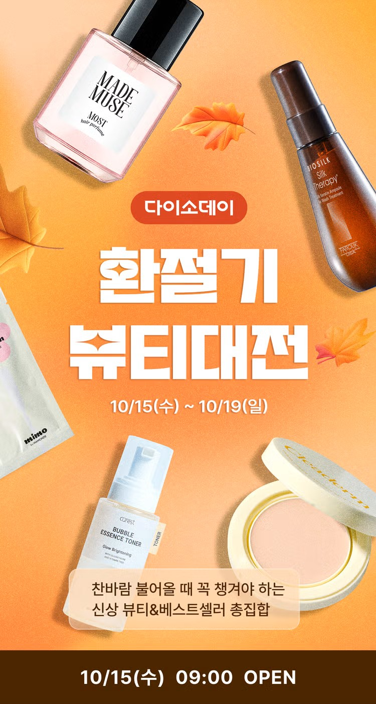[다이소데이] 2025 환절기 뷰티 스페셜위크: 10월 15~19일 단 5일간, 파티온·아크네스 신상 공개