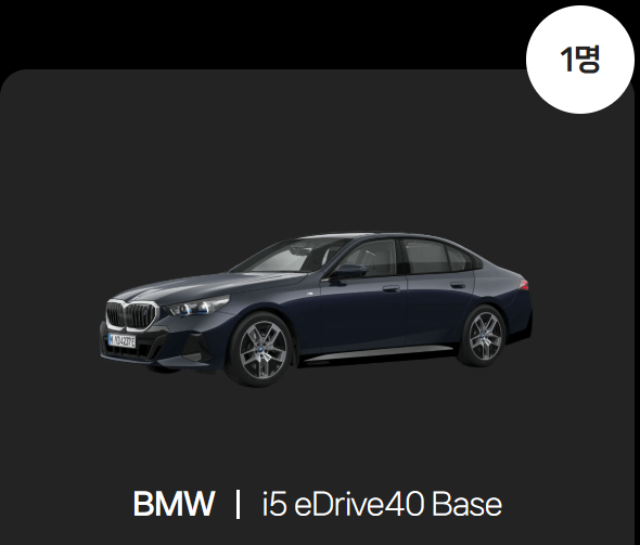 | BMW i5 | 1명 | 공식 BMW 딜러 출고 | - |