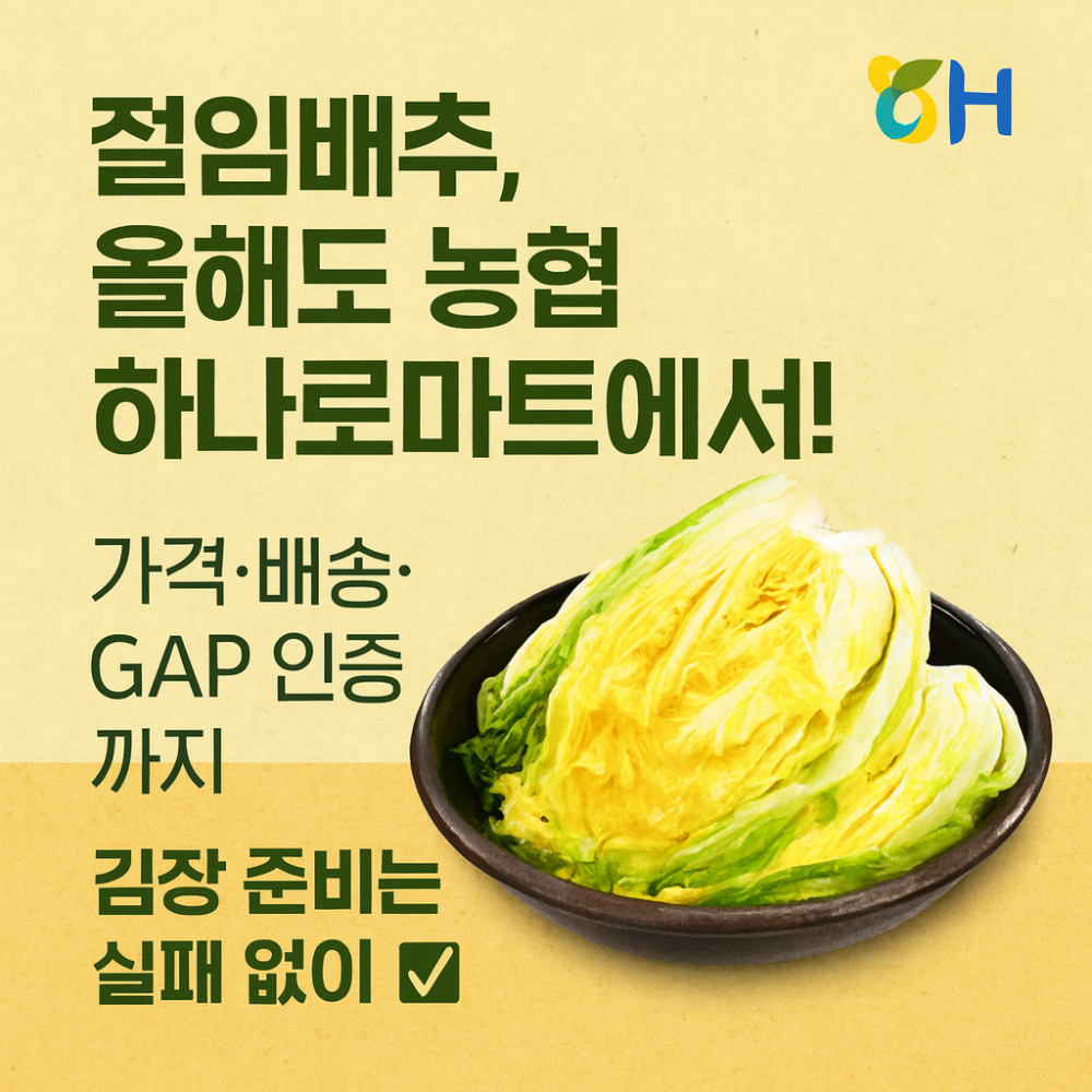 2025 농협 하나로마트 절임배추 예약 일정·가격·배송일정 총정리. GAP 인증 산지 배추, 무료배송, 온라인 예약 혜택까지 한눈에 확인하세요.