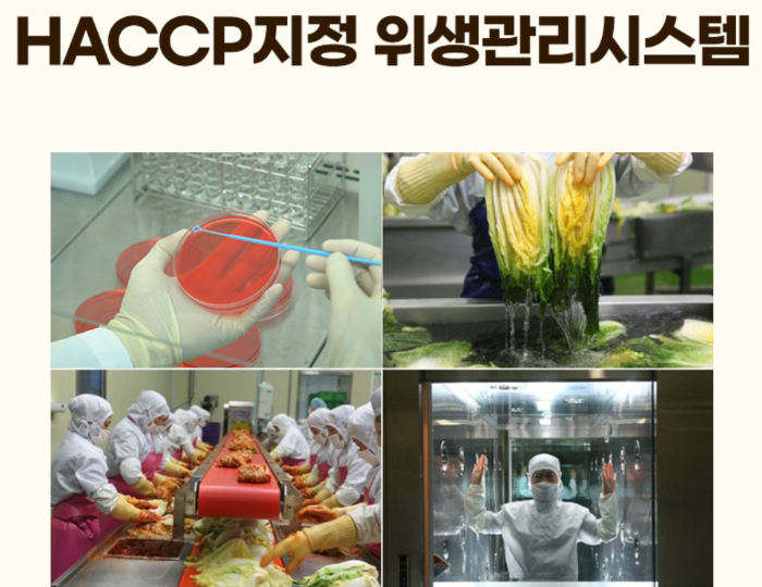 | HACCP 인증 | 절임·세척·포장 공정 위생 관리 | 미생물·염도 안전 관리 |