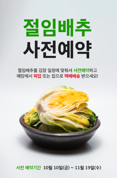 조기마감 전, 올해 김장 준비를 미리 마무리하세요.