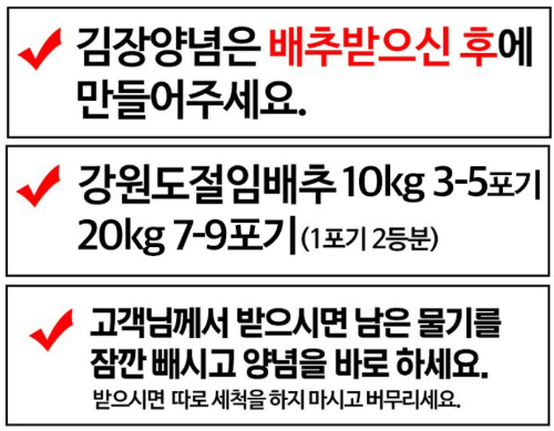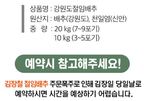 ✅ 절임배추 수령은 김장일 2일 전이 가장 이상적