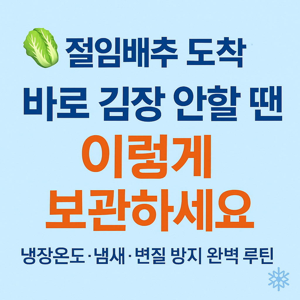 절임배추 도착 후 김장을 바로 하지 못할 때, 냉장보관·냄새차단·변질예방까지 한 번에 관리하는 실전 루틴. 김치냉장고 보관온도, 세척·탈수법 완벽정리.