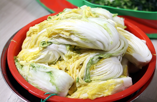배추 숨이 죽은 경우, 깨끗한 찬물에 약 10분간 담근 후 채반에서 물기를 빼고 1~2시간 두면