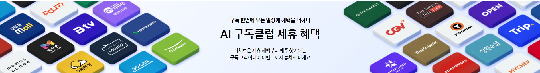 - 생활 서비스 – 배달앱, 세탁, 정수기 필터 교체 등 구독형 제휴 서비스 최대 20% 할인