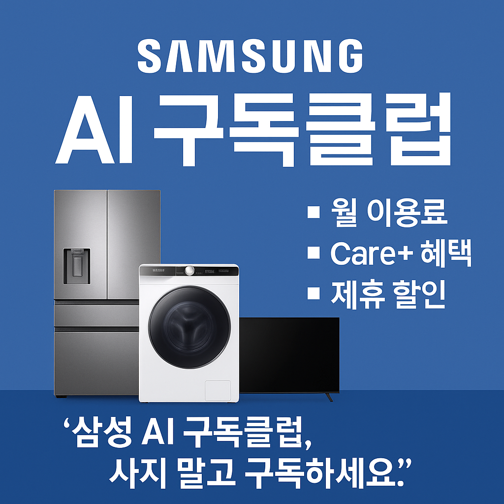 삼성 AI 구독클럽 완전정리! 월 요금제·Care+ 보장·전문가 방문케어·카드 할인 혜택까지 모두 한 번에. 👉 지금 바로 삼성닷컴에서 공식 구독 서비스 혜택을 확인하세요.