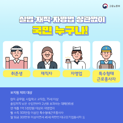 | 대상 | 실업자, 재직자, 자영업자, 특고 |