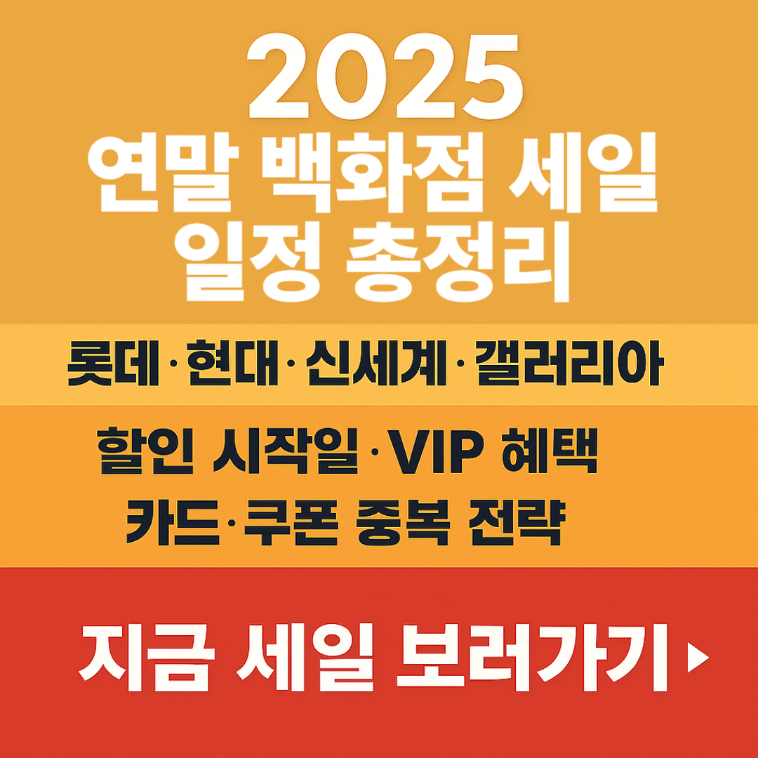 | 2025 연말 백화점 세일 루트 완전정리|롯데·현대·신세계·갤러리아 카드·포인트·VIP 혜택 + 실구매가 최대 40% 절감 (0) | 2025.11.01 |