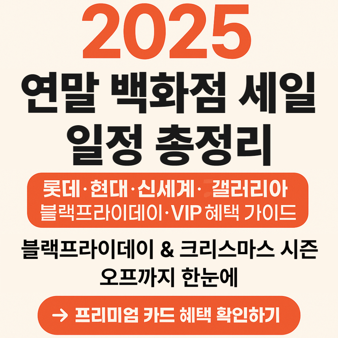 | 2025 연말 백화점 세일 루트 완전정리|롯데·현대·신세계·갤러리아 카드·포인트·VIP 혜택 + 실구매가 최대 40% 절감 (0) | 2025.11.01 |