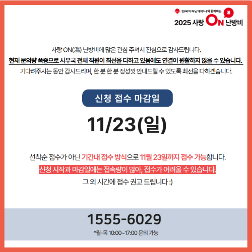 11월 현재, 한국지역난방공사의 ‘사랑ON(溫) 난방비 지원사업’ 신청이 한창입니다.