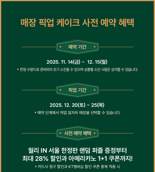 👉 지금 스타벅스 앱에서 예약하고, 연말 특별 케이크를 가장 편리하게 픽업하세요!