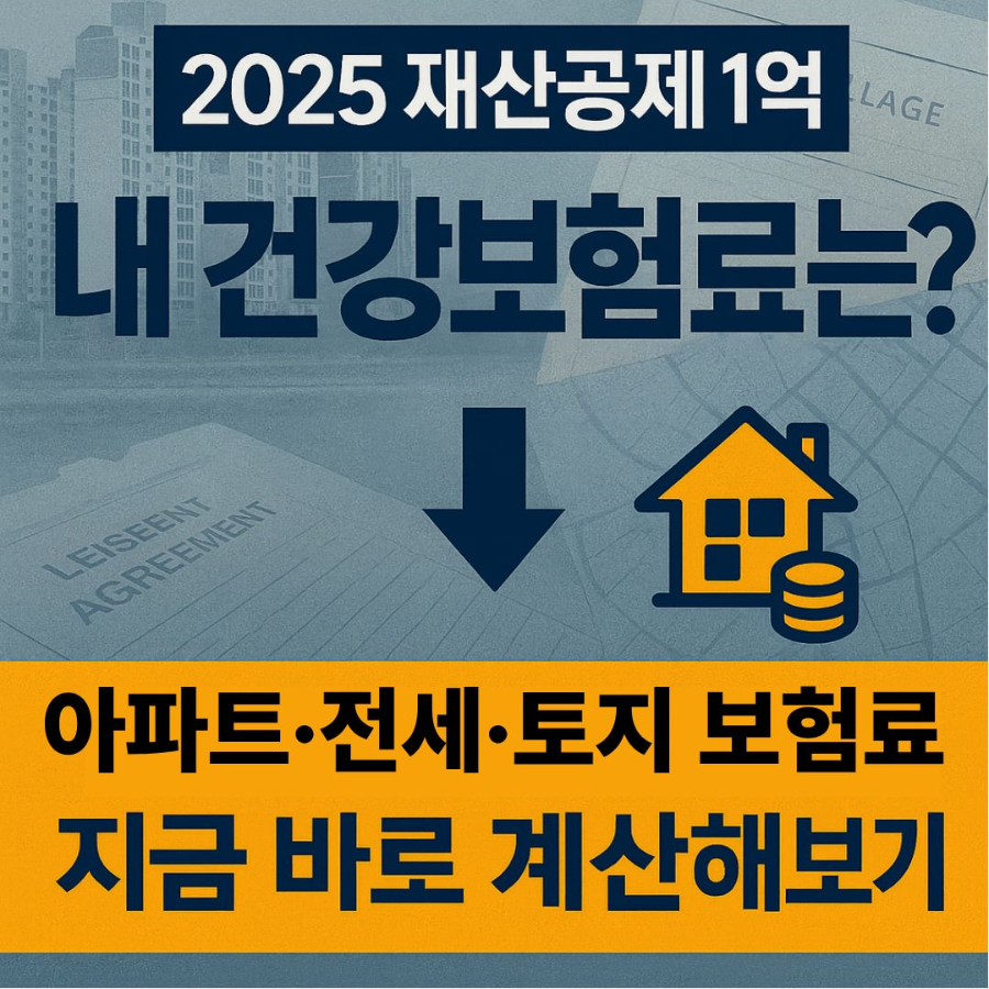 2025년부터 지역가입자 건강보험 재산공제 1억 적용! 아파트·전세·토지 보유자의 보험료 절감액과 실제 계산 방법을 한눈에 확인하세요. 지금 바로 모의계산으로 내 보험료 변동액을 체크해보세요.