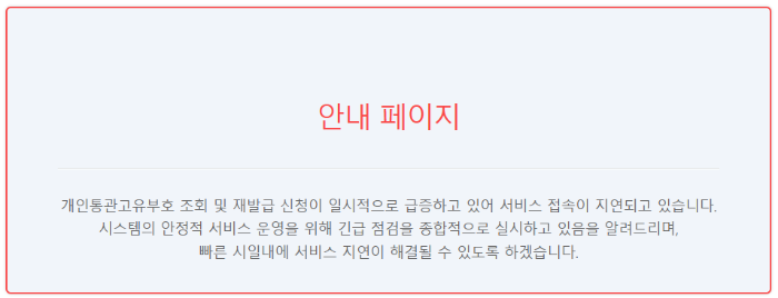 개인통관번호 조회·변경 페이지로 이용자가 몰리고 있는 상황입니다.