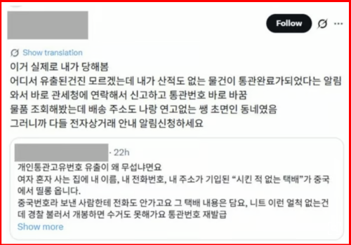 “개인통관번호까지 털린 것 아니냐”는 말이 빠르게 확산되고 있습니다.