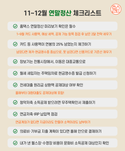 - 1~9월 카드 사용액·공제 가능 항목 점검 후 남은 기간 전략 세우기