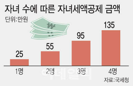 - 올해 기준 자녀세액공제 금액이 적용됐는지