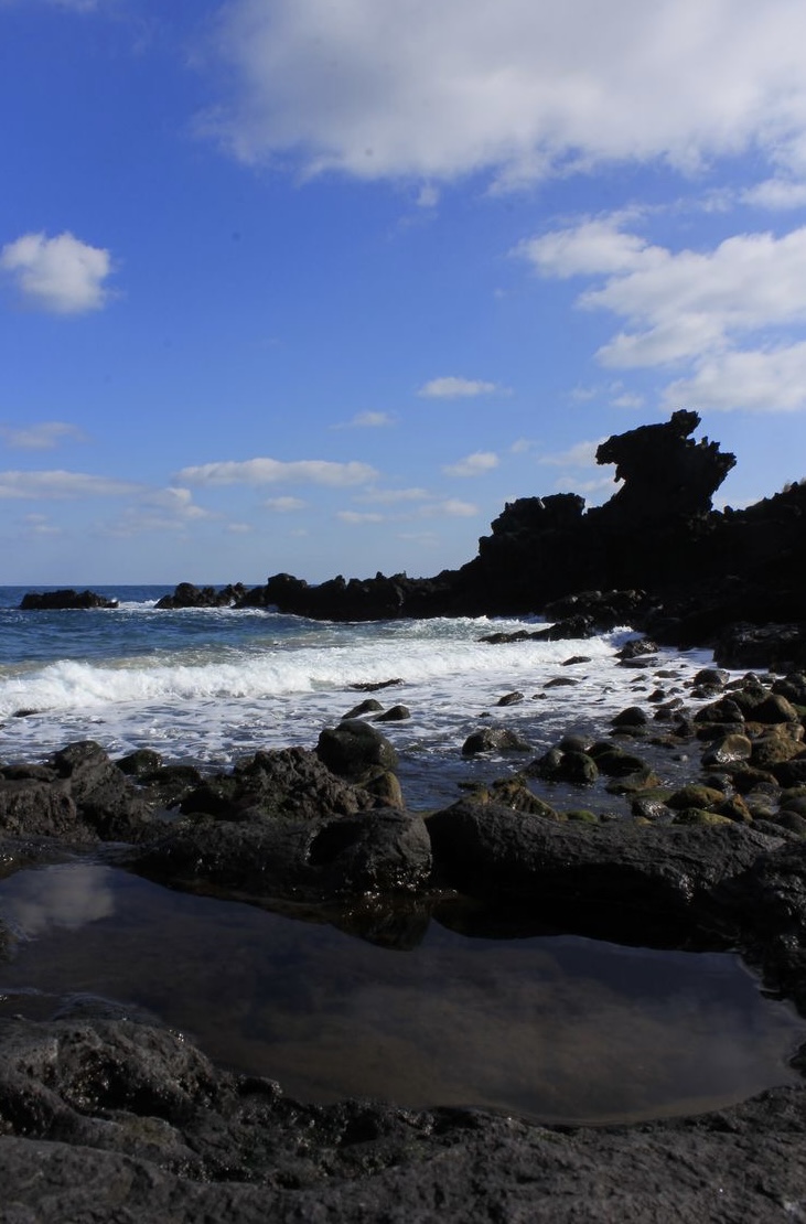 제주도의 서쪽에는 협재해수욕장과 용두암이 있습니다.